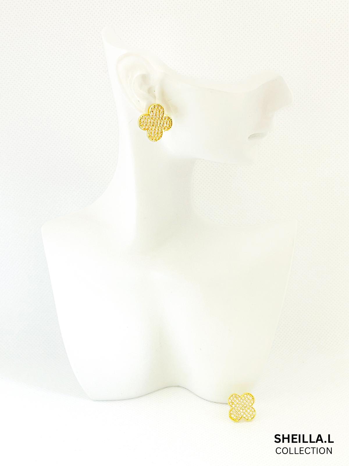 These gold clover stud earrings are crafted from high-quality stainless steel and 18k gold plating, offering durability and a timeless shine. Their minimalist clover design with a textured finish makes them perfect for everyday wear or elegant occasions.